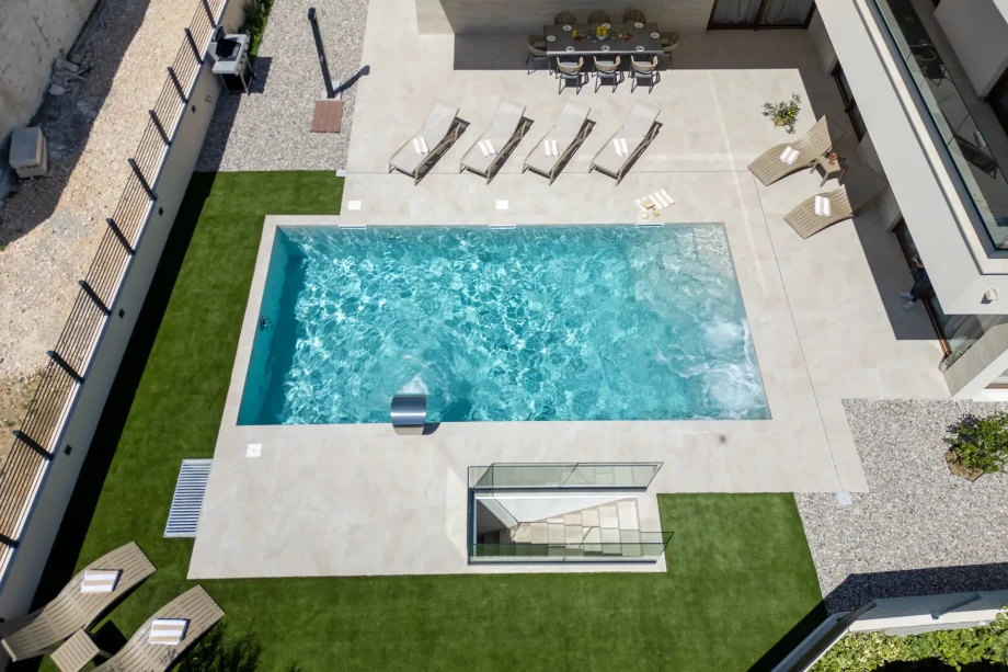 Villa Aria is a brand-new, luxury 4-bedroom villa in Kaštela, built in 2025 to offer a completely private getaway for up to 8 guests. Located in Kaštel Lukšić, right between the slopes of Kozjak Mountain and the Adriatic Sea, this home is just a 10-minute drive from Split International Airport. We’ve equipped the property with everything for an amazing stay, including a private heated pool with massage jets, a gym, and a massive 60m² sea-view balcony that’s perfect for long summer evenings. We don’t just provide the keys; our concierge team is here to organize your private chef, yacht charters, or airport transfers, making your stay on the Split Riviera entirely stress-free.