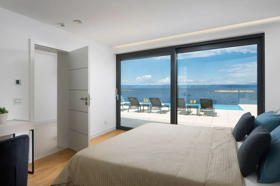 On the second floor of Villa Palma Korcula, you will find 3 more bedrooms. The first room, the master bedroom, is a comfortable space with an en suite bathroom with bath. The other two bedrooms have en suite bathrooms with showers. All rooms are air-conditioned, and have shared terrace with a breathtaking view of the sea and islands in the distance. Take in the very best of what the paradise island of Korcula has to offer.